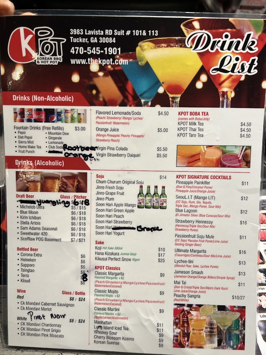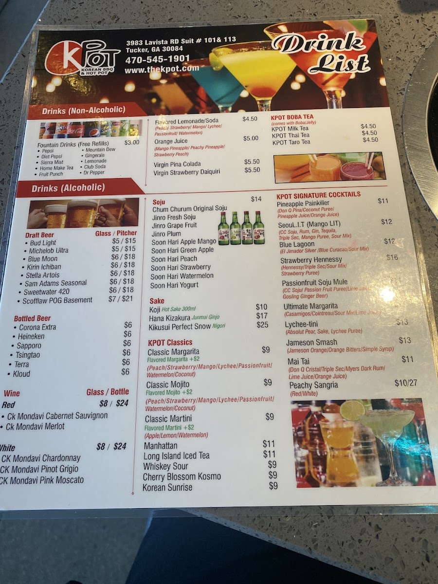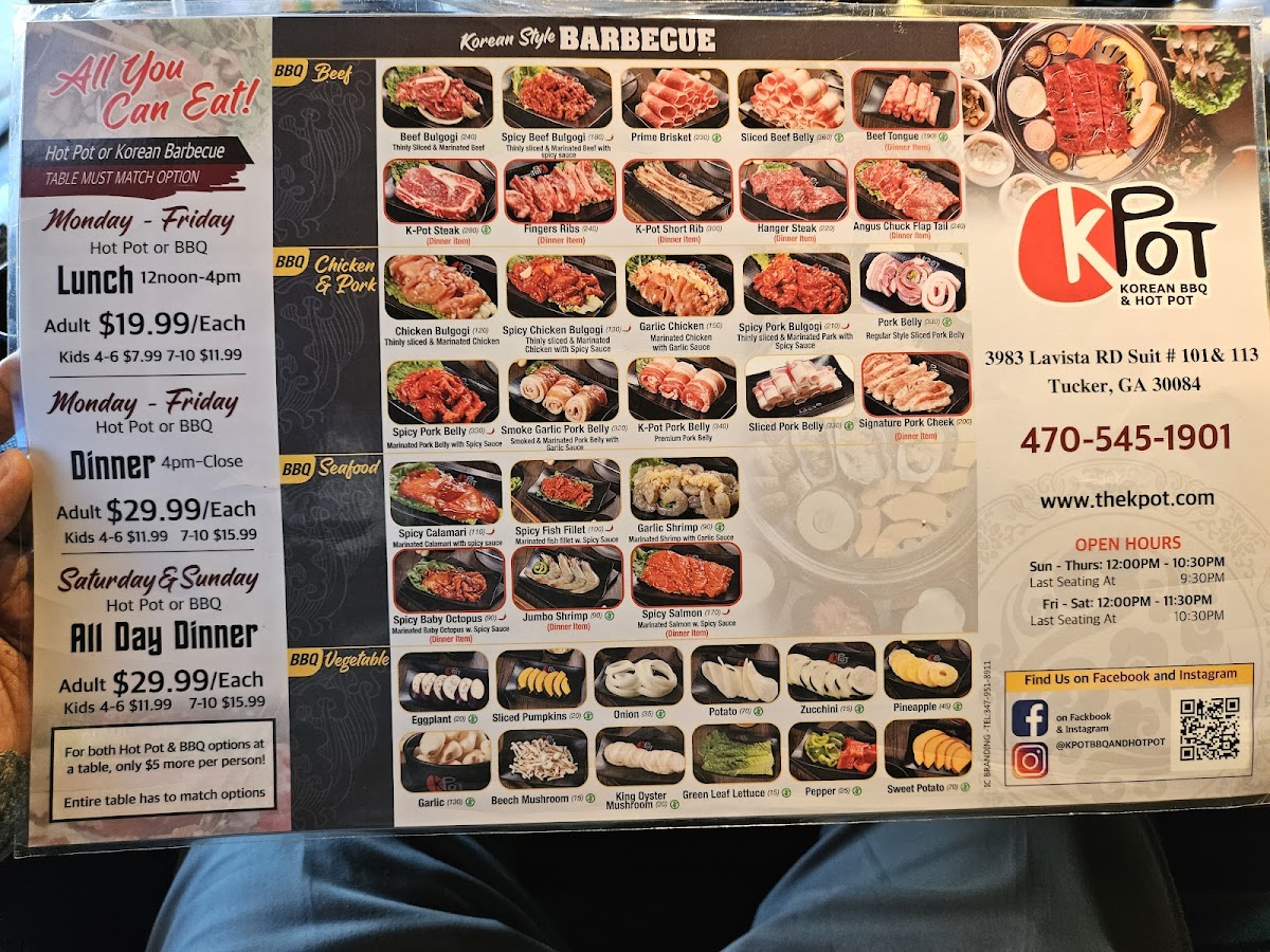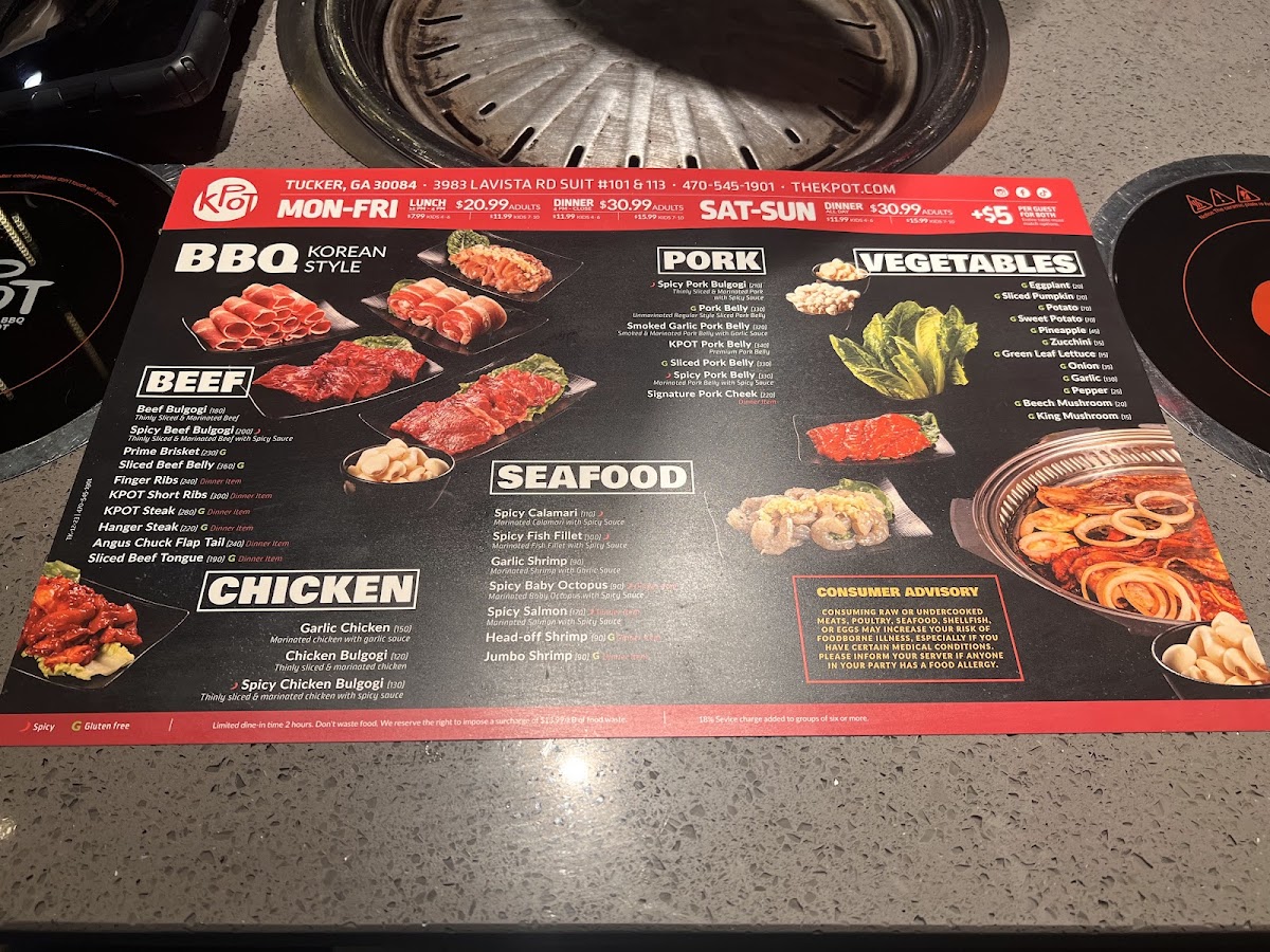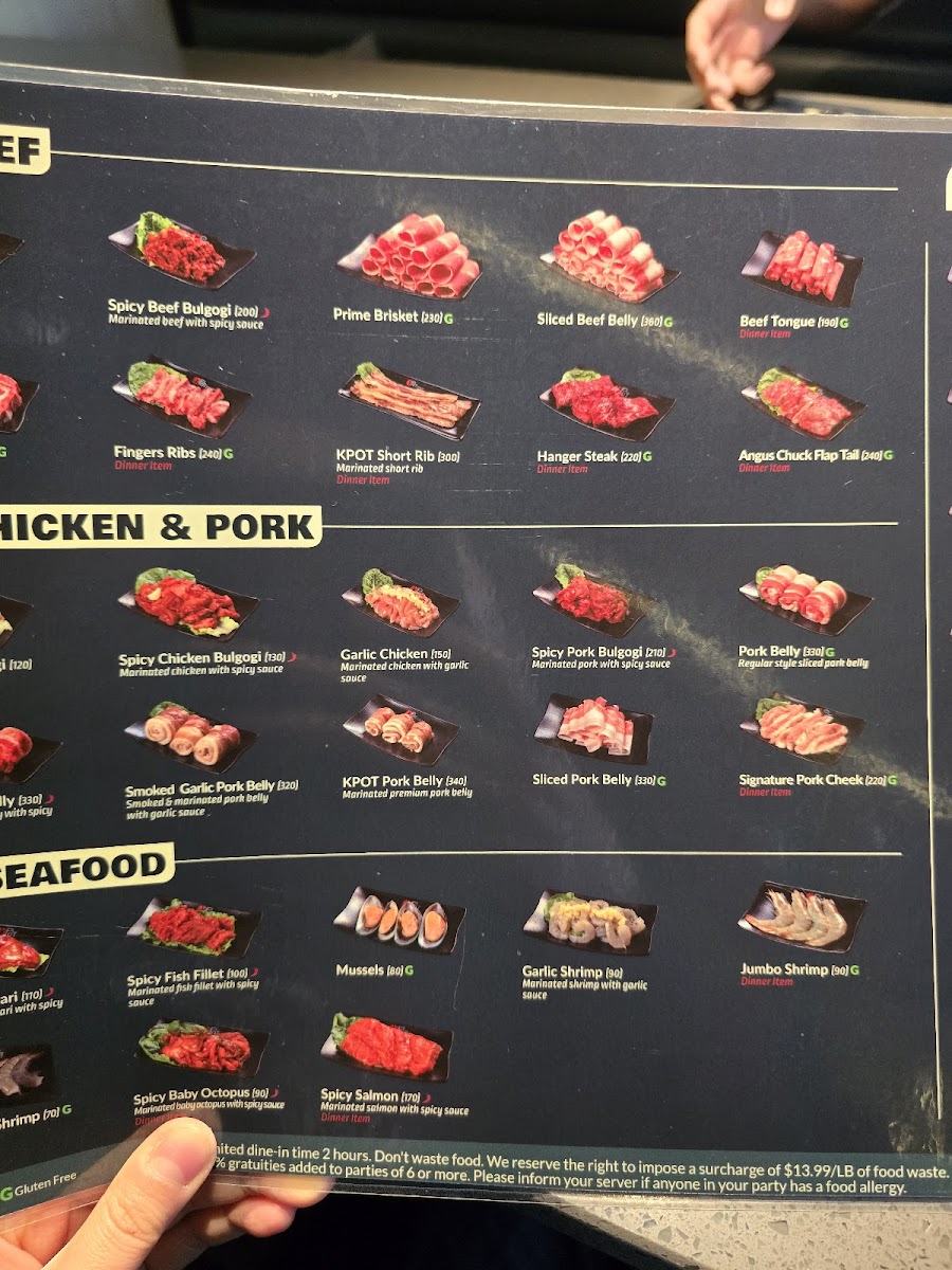 KPOT Korean BBQ & Hot Pot Tucker Menu